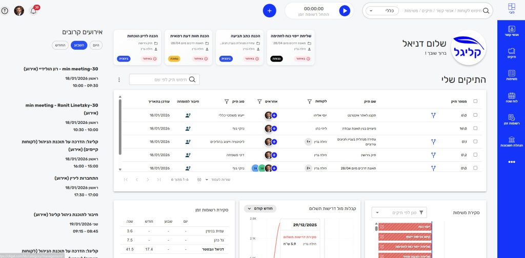 טבלת תיקים במקום טבלת משימות ורשימת משימות אחרונות במקום תיקים אחרונים. הבנו שרוב המשתמשים מעדיפים לראות את התיקים שלהם ולכן שינינו את התצוגה בשלב זה.