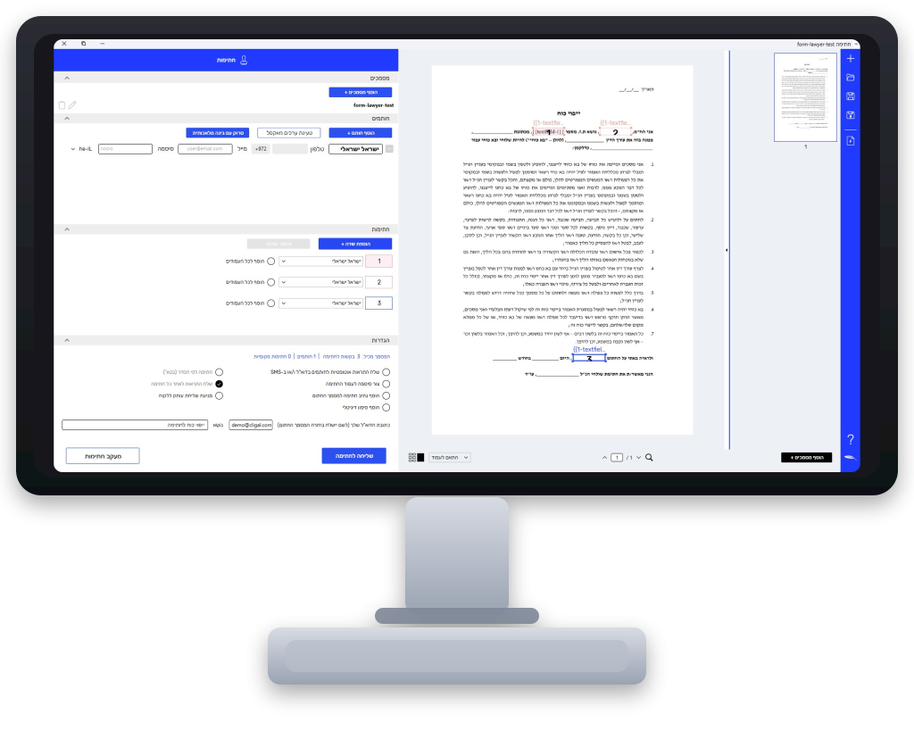 שליחה של מסמכים להחתמה דיגיטלית של לקוחות עם הטלפון, ללא הגבלה על כמות המסמכים או הודעות.