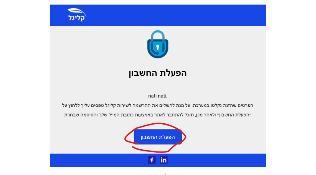 - לאחר מכן, תקבלו מייל אימות, הכנסו אליו ולחצי על "הפעלת חשבון".