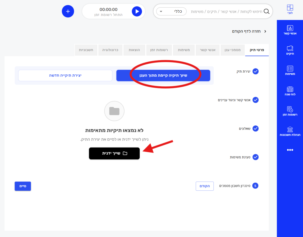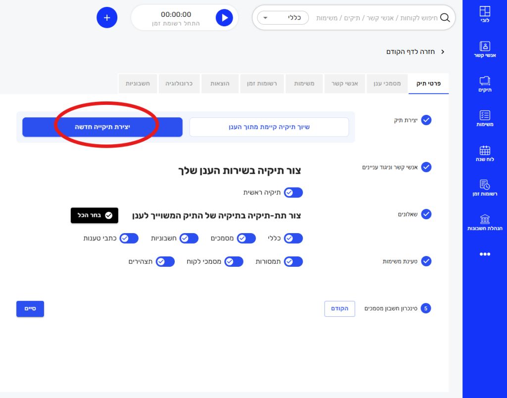 - יש ללחוץ על כפתור "הוספת תיק חדש" בצד שמאל ולפעול על פי השלבים הבאים: